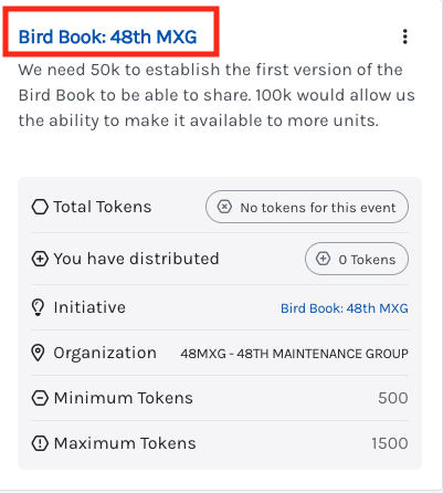 • Identify how many tokens you want to award to this project